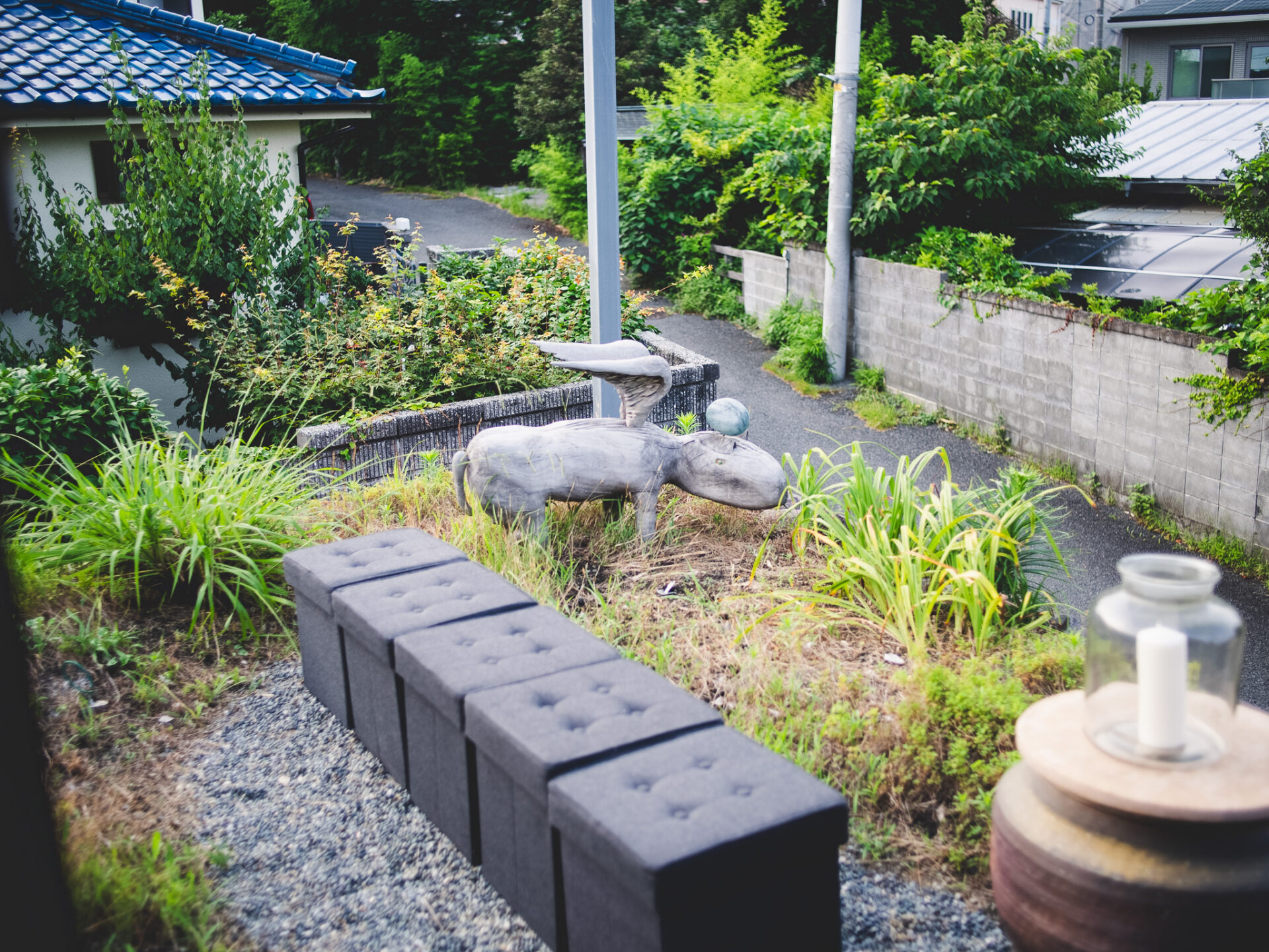 普段開放していない屋上庭園も待合として。怪獣が住んでいます。